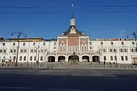 ![]() Памятник Создателям российских железных дорог на фоне казанского вокзала | |