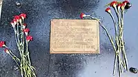 Таблица, расположенная с правого края стелы, выполнена в форме двух развевающихся знамён. На ней нанесён текст следующего содержания[2]: