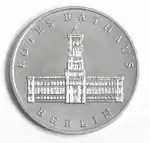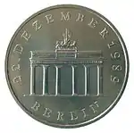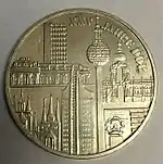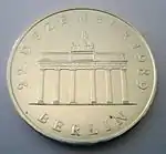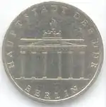 8.5.1972 | 9,6 | нейзильбер | Бранденбургские ворота | А. Бертрам, У. Фитценрайтер | 1971 — 18 137 822[коммент. 6] 1979 — 32 500 1980 — 29 800 1981 — 30 900 1982 — 30 000[коммент. 7] 1983 — 3000 1984 — 18 500[коммент. 8] 1985 — 3000 1986 — 15 780[коммент. 9] 1987 — 347 310[коммент. 10] 1988 — 25 650[коммент. 11] 1989 — 25 500[коммент. 12] 1990 — 50 500[22][23]* |