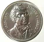 22.5.1978 | 17 | серебро 500-й пробы | 175-летие со дня рождения химика Юстуса фон Либиха | Эрика Шёнеберг, Райнер Радак | 70 601[коммент. 71][33]** |