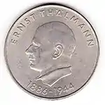 3.4.1986 | 12 | нейзильбер | 100-летия со дня рождения лидера немецких коммунистов, одного из главных политических оппонентов Адольфа Гитлера Эрнста Тельмана | Х. Хойер с супругой Снежаной Руссева-Хойер | 709 750[коммент. 85][95]*** |