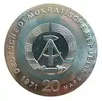 25.9.1969 | 9,7 | медно-никелевый сплав | 20 лет образования Германской Демократической Республики | А. Бертрам | 50 221 667[17][18][коммент. 2]* |