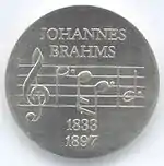 25.08.1972 | 12,2 | нейзильбер | 75 лет со дня смерти композитора и пианиста Иоганнеса Брамса | А. Бертрам | 100 420[24][25][коммент. 13]* |