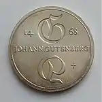 16.12.1968 | 17 | серебро 625-й пробы | 500-летие со дня смерти первопечатника Иоганна Гутенберга | А. Бертрам | 100 328[коммент. 55][69][67]** |