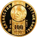 - С аналогичным дизайном были выпущены серебряные монеты номиналом 100 и 5000 тенге