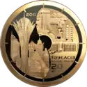 | Аверс: герб государства, карта Казахстана с изображением крылатого ирбиса, название банка-эмитента на каз. ҚАЗАҚСТАН ҰЛТТЫҚ БАНКІ, знак монетного двора, номинал, масса и проба металла. Реверс: на фоне стилизованного циферблата часов — коллаж из достопримечательностей Астаны и Алма-Аты, надпись на каз. ТӘУЕЛСІЗ ҚАЗАҚСТАНҒА 20 ЖЫЛ — «Независимому Казахстану 20 лет», год выпуска. Гурт рубчатый. Номинал: 50 000 тенге[23]. Масса: 1000 г. Диаметр: 100 мм. Тираж: 100 шт.[25] | ||