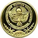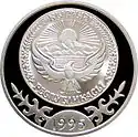 | Реверс: государственный герб на фоне стилизованного изображения беркута, год выпуска, надпись на кирг. УЛУУ КЫРГЫЗ КАГАНАТЫ, национальный орнамент. Аверс: позолоченное изображение тамги на фоне карты первичного расселения киргизов, 4 скачущих в стороны всадника, масса и проба металла, надпись орхоно-енисейской письменностью Тираж: 2000 шт. Качество: proof. | ||