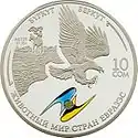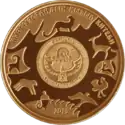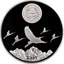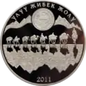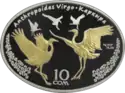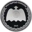 | Аверс: государственный герб и стилизованные изображения различных животных, надпись на кирг. ЕВРАЗЭС ӨЛКӨЛӨРҮНҮН ЖАНЫБАРЛАР ДҮЙНӨСУ и год выпуска. Реверс: скачущий на лошади беркутчи на фоне гор, летящий беркут, эмблема ЕврАзЭС, номинал, проба и масса металла, название птицы на русском и кирг. БҮРКҮТ, элементы национального орнамента и надпись на рус. ЖИВОТНЫЙ МИР СТРАН ЕВРАЗЭС. Тираж: 3000 шт. Отчеканена на Казахстанском монетном дворе. | ||