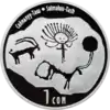| Аверс: герб Киргизии, изображение петроглифов, название серии на кирг. КЫРГЫЗСТАНДЫН ТАРЫХЫЙ ЖАНА АРХИТЕКТУРАЛЫК ЭСТЕЛИКТЕРИ, год чеканки. Реверс: петроглифы из урочища Саймалуу-Таш, его название на кирг. Саймалуу-Таш и на англ. Saimaluu-Tash, номинал. | ||