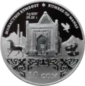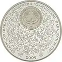 | Аверс: государственный герб, караван на фоне стилизованного изображения гор, надпись на кирг. УЛУУ ЖИБЕК ЖОЛУ и год выпуска. Реверс: карта с изображением Великого шёлкового пути и архитектурных сооружений стран, по которым он проходил, эмблема ЕврАзЭС, проба и масса металла, надпись на рус. ВЕЛИКИЙ ШЕЛКОВЫЙ ПУТЬ и номинал. Тираж: 2000 шт. Отчеканена на Санкт-Петербургском монетном дворе. | ||