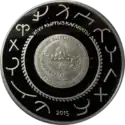 | Реверс: государственный герб, надпись на кирг. УЛУУ КЫРГЫЗ КАГАНАТЫ, тамги племён и родов киргизов, год выпуска. Аверс: позолоченное изображение тамги, композиция из рогов матери-оленихи, алтайских деревьев и сосны, войск Кыргызского каганата на фоне гор и синего неба, надпись на кирг. ТАМГА, номинал, масса и проба металла. Тираж: 2000 шт. Качество: proof. | ||