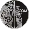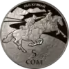 | Аверс: герб Киргизии, стилизованные изображения девушки и парня, скачущих верхом на лошадях, и людей, наблюдающих за состязанием, надпись на кирг. УЛУТТУК СПОРТ ЖАНА ЭЛДИК ОЮНДАРЫ, год выпуска. Реверс: изображение состязания на фоне гор, надпись на кирг. КЫЗ КУУМАЙ, номинал. Гурт: рубчатый. Отчеканена [уточнить]. Номинал: 5 сомов. Масса: 14,35 г. Диаметр: 33 мм. Тираж: 3000 шт. | ||