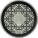 | Аверс: государственный герб, название банка-эмитента на кирг. Кыргыз Республикасынын Улуттук банкы, год выпуска, номинал, масса и проба металла. Реверс: эмблема ЕАЭС на фоне карты Евразии на стилизованном изображении земного шара, цветные изображения флагов государств-членов ЕАЭС, название организации на кирг. ЕВРАЗИЯ ЭКОНОМИКАЛЫК СОЮЗУ и рус. ЕВРАЗИЙСКИЙ ЭКОНОМИЧЕСКИЙ СОЮЗ. Тираж: 1000 шт. Отчеканена [уточнить]. |