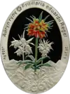 | Аверс: государственный герб, окружённый стилизованными изображениями растений, название серии на кирг. КЫРГЫЗСТАНДЫН КЫЗЫЛ КИТЕБИ и год выпуска. Реверс: изображение цветка на фоне гор, название растения на кирг. Айгүл гүлү и лат. Fritillaria eduardii Regel, номинал, масса и проба металла. Размеры: 38,61×28,81 мм. Тираж: 2000 шт. Отчеканена [уточнить]. | ||