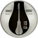 | Аверс: надпись на кирг. улуттук музыкалык аспаптар, национальные музыкальные инструменты, герб Киргизии, год выпуска. Реверс: человек, играющий на комузе, название инструмента на кирг. Комуз и номинал. Гурт: рубчатый. Отчеканена на Литовском монетном дворе. Номинал: 5 сомов. Масса: 14,35 г. Диаметр: 33 мм. Тираж: 3000 шт. | ||