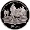 Монеты номиналом 10 сомов массой 28,28 г и диаметром 38,60 мм изготовлены из серебра 925 пробы proof.