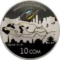 Монеты номиналом 10 сомов массой 28,28 г и диаметром 38,60 мм отчеканены из серебра 925 пробы в качестве proof на Литовском монетном дворе.