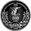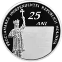 | Аверс: номинал, герб и название государства, год выпуска. Реверс: Декларация о независимости, памятник Стефану Великому в Кишинёве, надпись на молд. 25 ANI PROCLAMARAEA INDEPENDENȚEI REPUBLICII MOLDOVA. Гурт: рубчатый. Номинал: 100 леев. Материал: серебро-999. Масса: 31,1 г. Диаметр: 37 мм. Тираж: 300 шт. | ||