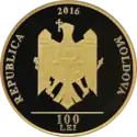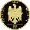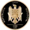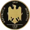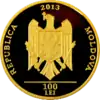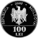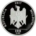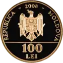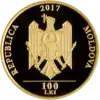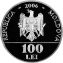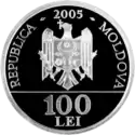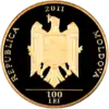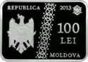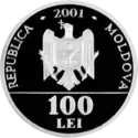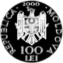 Монеты номиналом 100 леев имеют массу 15,5 г, диаметр 28 мм и рубчатый гурт. С аналогичным дизайном также чеканятся серебряные монеты номиналом 50 леев.