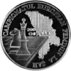 | Аверс: номинал, герб и название государства, год выпуска. Реверс: изображение шахматной доски с двумя фигурами, силуэт карты Молдавии, надписи на молд. CHIȘINĂU-2005 и молд. CAMPIONATUL EUROPEAN FEMININ LA ȘAH. Гурт: гладкий. Номинал: 10 леев. Масса: 25,00 г. Диаметр: 30,00 мм. Тираж: 500 шт. |