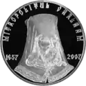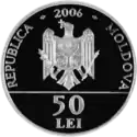 | Аверс: номинал, герб и название государства, год выпуска. Реверс: портрет Варлаама, годы (1657—2007) и его имя на молд. MITROPOLITUL VARLAAM. Гурт: гладкий. Номинал: 50 леев. Материал: серебро-925. Масса: 16,5 г. Диаметр: 30 мм. Тираж: 500 шт. | ||