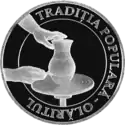 | Реверс: сцена создания сосуда на гончарном круге, надпись на молд. TRADIȚIA POPULARĂ — OLĂRITUL. Гурт: гладкий. Материал: серебро-925. Тираж: 500 шт. | ||