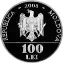 | Аверс: номинал, герб и название государства, год выпуска. Реверс: изображение древа жизни, книга, портрет Матковского, годы жизни и имя на молд. DUMITRU MATCOVSCHI. Гурт: рубчатый. Номинал: 100 леев. Материал: серебро-999. Масса: 13 г. Диаметр: 28 мм. Тираж: 1000 шт. | ||