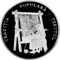 | Реверс: женщина за ткацким станком, надпись на молд. TRADIȚIA POPULARĂ — ȚESUTUL. Гурт: гладкий. Материал: серебро-925. Тираж: 500 шт. | ||