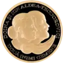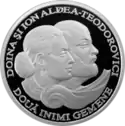 | Аверс: номинал, герб и название государства, год выпуска. Реверс: портрет супругов, надпись на молд. DOINA ȘI ION ALDEA-TEODOROVICI DOUĂ INIMI GEMENE. Гурт: рубчатый. Номинал: 100 леев. Масса: 15,5 г. Диаметр: 28 мм. Тираж: 300 шт. | ||