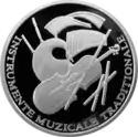 | Реверс: инструменты: скрипка, чимпой, най и флуер, надпись на молд. INSTRUMENTE MUZICALE TRADIȚIONALE. Гурт: рубчатый. Материал: серебро-999. Тираж: 500 шт. | ||