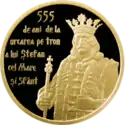 | Аверс: номинал, герб и название государства, год выпуска. Реверс: портрет Стефана III, надпись на молд. 555 de ani de la urcarea pe tron a lui Ștefan cel Mare și Sfânt. Гурт: рубчатый. Номинал: 100 леев. Масса: 15,5 г. Диаметр: 28 мм. Тираж: 1000 шт. | ||
