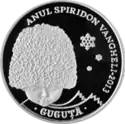 | Аверс: номинал, герб и название государства, год выпуска. Реверс: персонаж Гугуцэ и три снежинки, его имя на молд. GUGUȚĂ и надпись на молд. ANUL SPIRIDON VANGHELI — 2013. Гурт: рубчатый. Номинал: 100 леев. Материал: серебро-999. Масса: 13 г. Диаметр: 38 мм. Тираж: 2000 шт. | ||