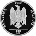 | Аверс: номинал, герб и название государства, год выпуска, национальный орнамент, эмблема НБМ. Реверс: портрет Стефана III, национальный орнамент, название Национального банка на молд. BANCA NAȚIONALĂ A MOLDOVEI, надпись на молд. 20 de ani de la introducerea monedei naționale în Republica Moldova, круг, внутри него — символ победы — «V» и фрагмент текста песни на молд. PE-UN PICIOR DE PLAI, PE-O GURĂ DE RAI.... Гурт рубчатый. Номинал: 100 леев. Материал: серебро-999. Масса: 28,28 г. Размеры: 40×28 мм. Тираж: 2000 шт. | ||