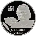 | Аверс: номинал, герб и название государства, год выпуска. Реверс: портрет Григоре Виеру, три книги и перо, годы жизни и имя на молд. GRIGORE VIERU. Гурт: рубчатый. Номинал: 50 леев. Материал: серебро-999. Масса: 31,1 г. Диаметр: 37 мм. Тираж: 1000 шт. | ||