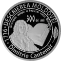 | Аверс: номинал, герб и название государства, год выпуска. Реверс: портрет Кантемира на фоне раскрытой книги, название сочинения на лат. Descriptio antiqui et hodierni status Moldaviae и молд. DESCRIEREA MOLDOVEI, надпись на молд. 300 de ani, год написания работы (1716) и имя автора на молд. Dimitrie Cantemir. Гурт: рубчатый. Номинал: 100 леев. Масса: 31,1 г. Диаметр: 37 мм. Тираж: 250 шт. | ||