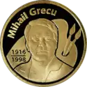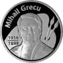| Аверс: номинал, герб и название государства, год выпуска. Реверс: портрет художника, годы его жизни (1916—1998) и имя на молд. Mihail Grecu. Гурт: рубчатый. Номинал: 50 леев. Масса: 13 г. Диаметр: 28 мм. Тираж: 200 шт. | ||
