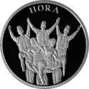 | Реверс: группа танцоров, название танца на молд. HORA. Гурт: рубчатый. Материал: серебро-999. Тираж: 250 шт. |