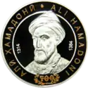 | Реверс: портрет поэта, свиток с надписью на тадж. 1150 СОЛ и перо, надпись на тадж. АРДАФТАРИ АДАБИЁТИ ТОЧИК АБУАБДУЛЛОҲИ РУДАКИ ★. Номинал: 5 сомони. Масса: 7,5 г. Диаметр: 26,5 мм. Толщина: 1,6 г. Тираж: 100 000 шт. |