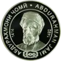| Реверс: портрет Руми, надписи на тадж. ШОИР ВА МУТАФАККИРИ БУЗУРГ МАВЛОНО ҶАЛОЛЛИДИНИ РУМӢ ★ 1207—1273 ★ и тадж. 800 СОЛ. Материал: нейзильбер. |