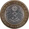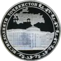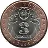 | Реверс: памятник Исмаилу Самани в Душанбе, надписи на тадж. ПОЙТАҲТИ ТОҶИКИСТОН ш. ДУШАНБЕ ★ 1924—2004 ★ и тадж. 80 СОЛ. Номинал: 3 сомони. Масса: 6,35 г. Диаметр: 25,5 мм. Толщина: 1,6 г. Тираж: [уточнить] | ||