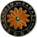 | Аверс: герб и название государства на таджикском и английском языках, масса и проба металла, номинал. Реверс: название поселения на тадж. САРАЗМ и англ. SARAZM, надпись «СОЛ 5500 YEARS» — «5500 лет», символ поселения в виде цветка с 12 лепестками, год выпуска монеты. Гурт: рубчатый. Отчеканена [уточнить] Номинал: 100 сомони. Масса: 31,1 г. Диаметр: 38,61 мм. Тираж: 5000 шт. | ||