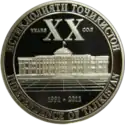 | Аверс: герб, флаг и название государства, номинал и год выпуска. Реверс: надпись «Независимость Таджикистана» на тадж. ИСТИҚЛОЛИЯТИ ТОҶИКИСТОН и англ. INDEPENDENCE OF TAJIKISTAN, Дворец Нации и надпись «YEARS XX СОЛ» — «20 лет», даты юбилея «1991-2011». Гурт: рубчатый. Отчеканена фирмой Mayer Mint GmbH Germany. Номинал: 50 сомони. Масса: 28,28 г. Диаметр: 38,61 мм. Тираж: 3000 шт. | ||