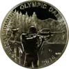 Реверс: надпись «Олимпийские игры» на тадж. БОЗИҲОИ ОЛИМПӢ и англ. OLYMPIC GAMES и год выпуска монеты на фоне сцены соответствующего вида спорта.