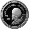 Реверс: изображение деятеля, его имя и годы жизни, номинал монеты, орнамент.