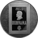 Реверс: по центру — изображение одной из книг Туркменбаши и номинал монеты на фоне орнамента.