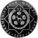| Аверс: портрет Туркменбаши, надпись на туркм. TÜRKMENISTANYÑ PREZIDENTI SAPARMYRAT NYҰAZOW. Реверс: парфянский ритон, надпись на туркм. TÜRKMENISTANYÑ TEÑÑESI, номинал и год выпуска монеты. Гурт рубчатый. Номинал: 1000 манатов. Материал: золото-999. Масса: 15,55 г. Диаметр: 24,00 мм. Тираж: 5000 шт. | ||