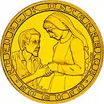 | «2000 лет Христианству» | €50 | Католический Орден Св. Бенеди́кта | 13 марта 2002 | Au 986 |