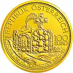 - 100 евро, Австрия (Корона эрцгерцогов Австрии). Euro-Coins.News. Дата обращения: 23 января 2012. Архивировано 28 мая 2012 года.