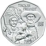 - 5 евро, Австрия (200 лет Тирольскому восстанию 1809 года). Euro-Coins.News. Дата обращения: 23 января 2012. Архивировано 28 мая 2012 года.
