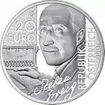 - Австрия, 20 евро (Стефан Цвейг) (недоступная ссылка). Euro-Coins.News. Дата обращения: 20 марта 2012. Архивировано 10 мая 2013 года.